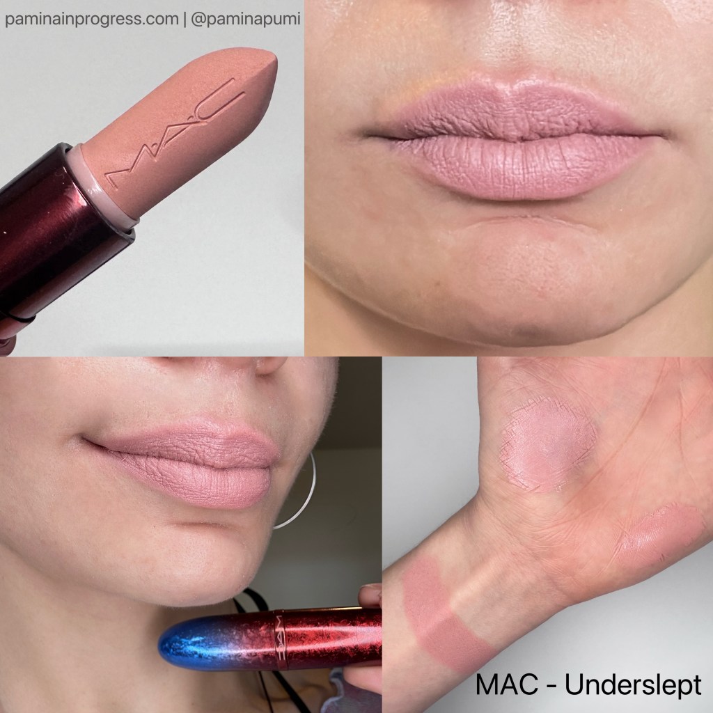 Technically this lipstick is “Fleshpot” but in a matte formula. I don’t really know MAC lore like that. What I do know is Fleshpot is an iconic shade and it has gone through some subtle shade changes. From what I have seen – OG MAC lovers are pro at catching the difference , but this shade seems to be a winner compared to past re-releases.