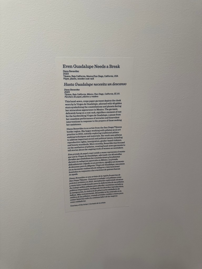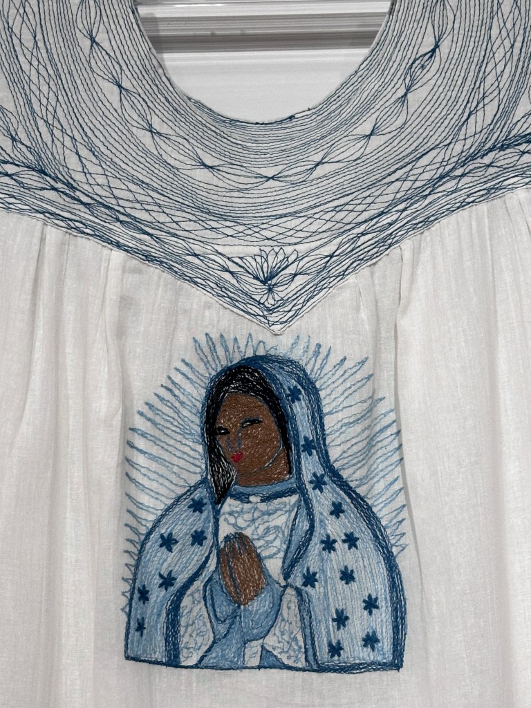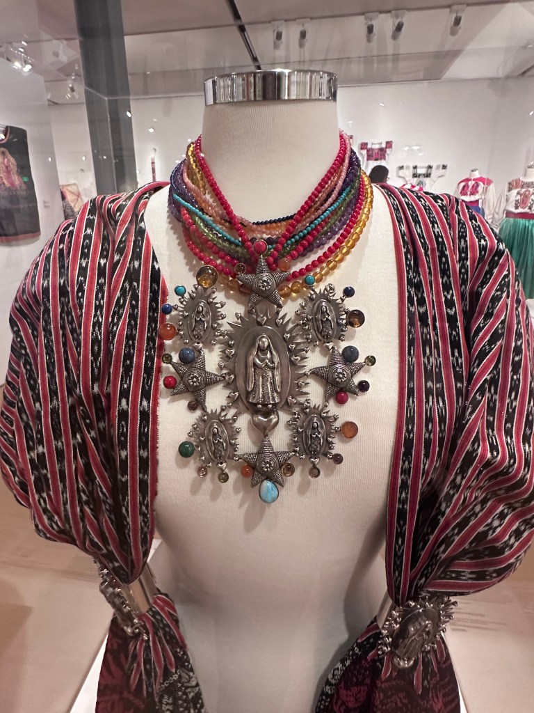 It really made me think about how far and wide la virgin’s impact is. Yes, we can see 70 artists showcased in this museum. But, I think about the many ways she shows up for other people, to give them strength and comfort. It could be a parent buying a gold pendant representing her. Maybe, a grandmother hand embroidering her on clothing for her family.